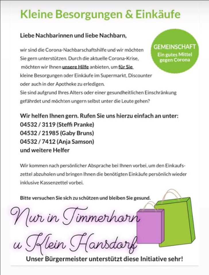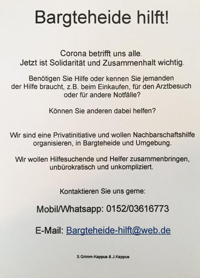 Im Zuge der aktuellen Situation haben sich in Stormarn einige Initiativen zur Nachbarschaftshilfen gegründet. Hilfe kann dort angefragt werden, aber es werden auch noch helfende Hände gesucht!