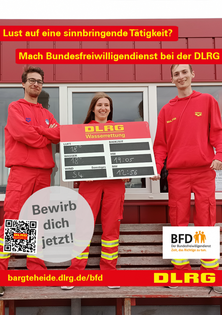 Geeignet ist die Stelle für alle Personen, die sich im Rahmen der vielfältigen Aufgaben engagieren möchten, die genauen Details sind auf der Homepage der DLRG Bargteheide unter https://bargteheide.dlrg.de/bfd zu finden. Interessant vor allem ist, dass sich die Stelle für Menschen jeder Altersgruppe anbietet und nicht, wie aus dem freiwilligen sozialen oder ökologischen Jahr (FSJ/FÖJ) bekannt, nur an junge Personenkreise.
