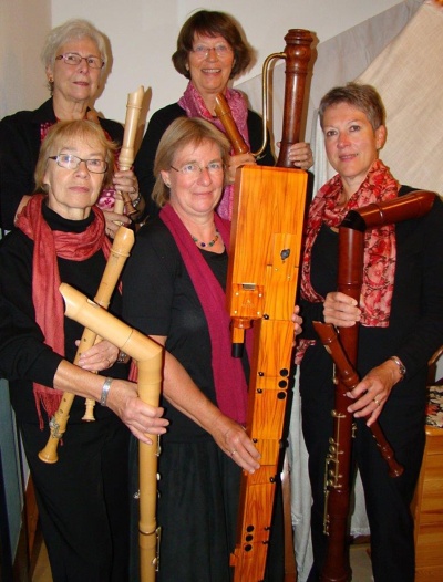 Die 5 Musikerinnen spielen Musik aus 4 Jahrhunderten von Praetorius über Dvorak bis zu den Comedian Harmonists auf 7 unterschiedlichen Flöten, vom Sopranino bis zum Subbaß.