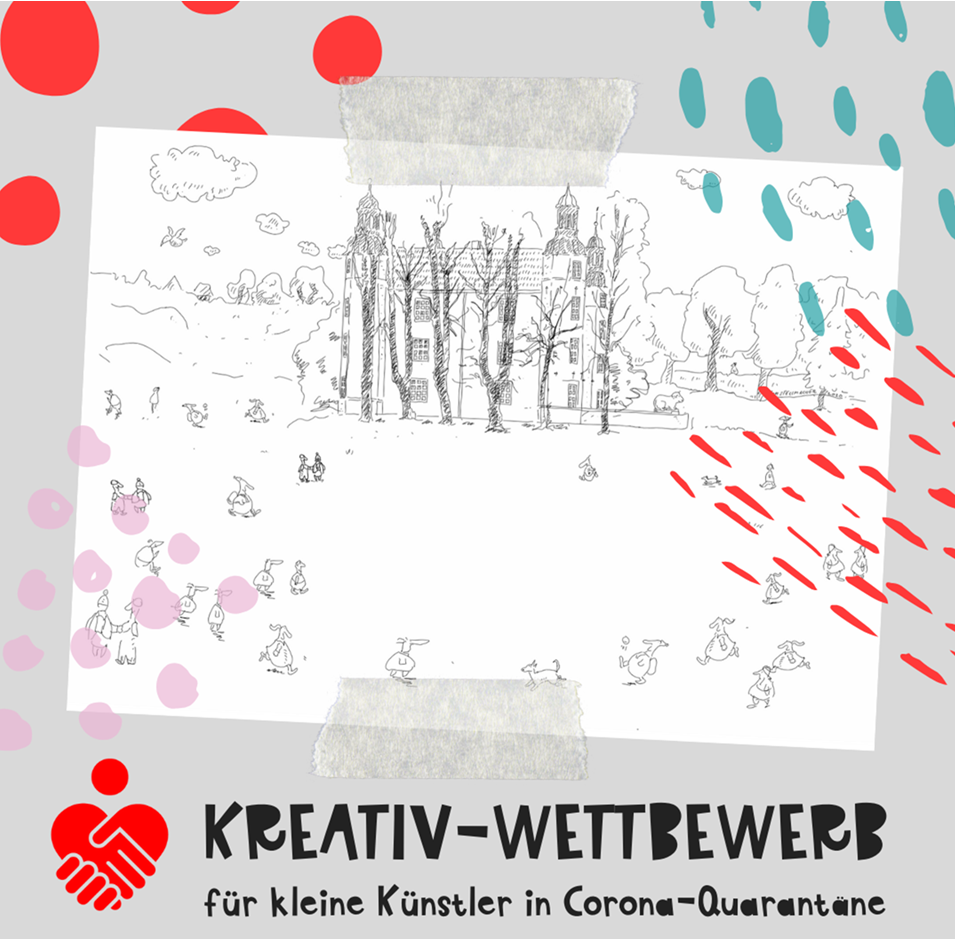 Einfach auf unserer Webseite unter https://www.stiftungen-sparkasse-holstein.de/aktuell/news/view/14230 unser Ausmalbild herunterladen und los geht‘s! Male das Schloss so aus, wie es dir gefällt. Zeichne auf die Schlosswiese deine kreative Antwort auf folgende Frage: Spielende Kinder, picknickende Osterhasen oder gar eine Alieninvasion? Wie wird das Leben auf der Schlosswiese in Ahrensburg nach der Corona-Quarantäne aussehen?