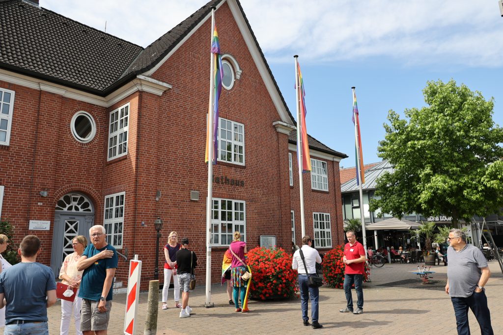 Mit dem heutigen Hissen der Regenbogenflaggen vor dem Bargteheider Rathaus setzen wir bereits im dritten Jahr ein Zeichen für Vielfalt und Akzeptanz in Bargteheide.