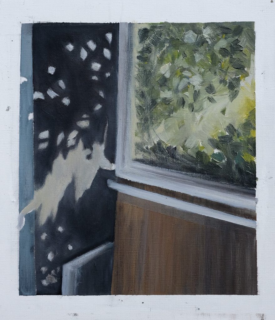 Die Fotografie begleitet Frau Bürgermeister erst seit einigen Monaten, die Kunst bereits seit sie einen Stift halten kann. Malen und zeichnen fingen sie auf, wenn der Abgrund sich auftat, spannten ein Netz, in dem sie innehalten, verarbeiten konnte. Waren es in den ersten Jahren vor allem Aquarelle, wurden die Farbkästen in den letzten Jahren durch Flaschen mit Acrylfarben abgelöst, bis sie vor kurzer Zeit ihre Faszination für die weiche Textur der Ölfarben entdeckte.