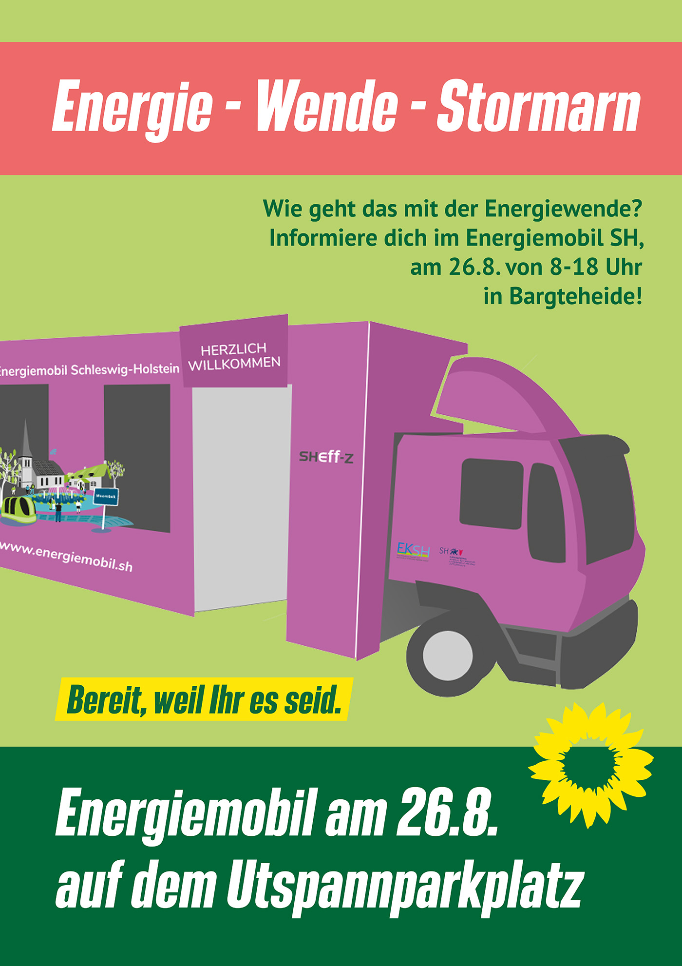 Wie die Energiewende funktionieren kann, was im Großen wie im Kleinen auf dem Weg zur Klimaneutralität getan werden muss, das zeigt das Energiemobil Schleswig-Holstein an konkreten Beispielen. Die Stormarner Grünen haben den großen Truck in der kommenden Woche nach Bargteheide, Ammersbek und Tangstedt eingeladen. Interessierte können das Energiemobil jeweils zwischen 8 und 18 Uhr besuchen.