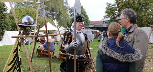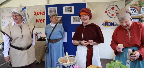 Es war ein buntes und turbulentes Wochehende in Bargteheide. Offizielle 700-Jahrfeier und verkaufsoffener Sonntag bei Superwetter für die Jahreszeit. Im Stadtpark kampierten die Heerlager, die ihr Hobby Mittelalter leben und darstellen möchten. Einige von ihnen kommen aus Bargteheide, wie Angelika und Uwe Schildmeier, die als Engelke von Soest und Jochen Ossenkopp Kauffrau und Stadtrommler sind.