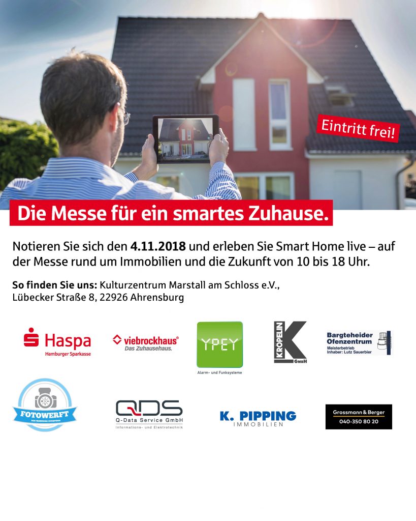 Am 04.11.2018 findet von 10–18 Uhr im Marstall Ahrensburg die erste Immobilienmesse der Haspa Stormarn mit dem Schwerpunktthema „Smart Home“ statt. Neben dem Ausblick zum aktuellen Immobilienmarkt präsentiert die Haspa mit Unterstützung ihrer Messepartner innovative und moderne Lösungen – kreativ, kundenorientiert und leicht verständlich. Die Haspa lädt herzlich ein: Der Eintritt sowie die Getränke sind frei. Ein weiteres Highlight: ein 500-Euro-Gewinngutschein des Möbelhauses Höffner.